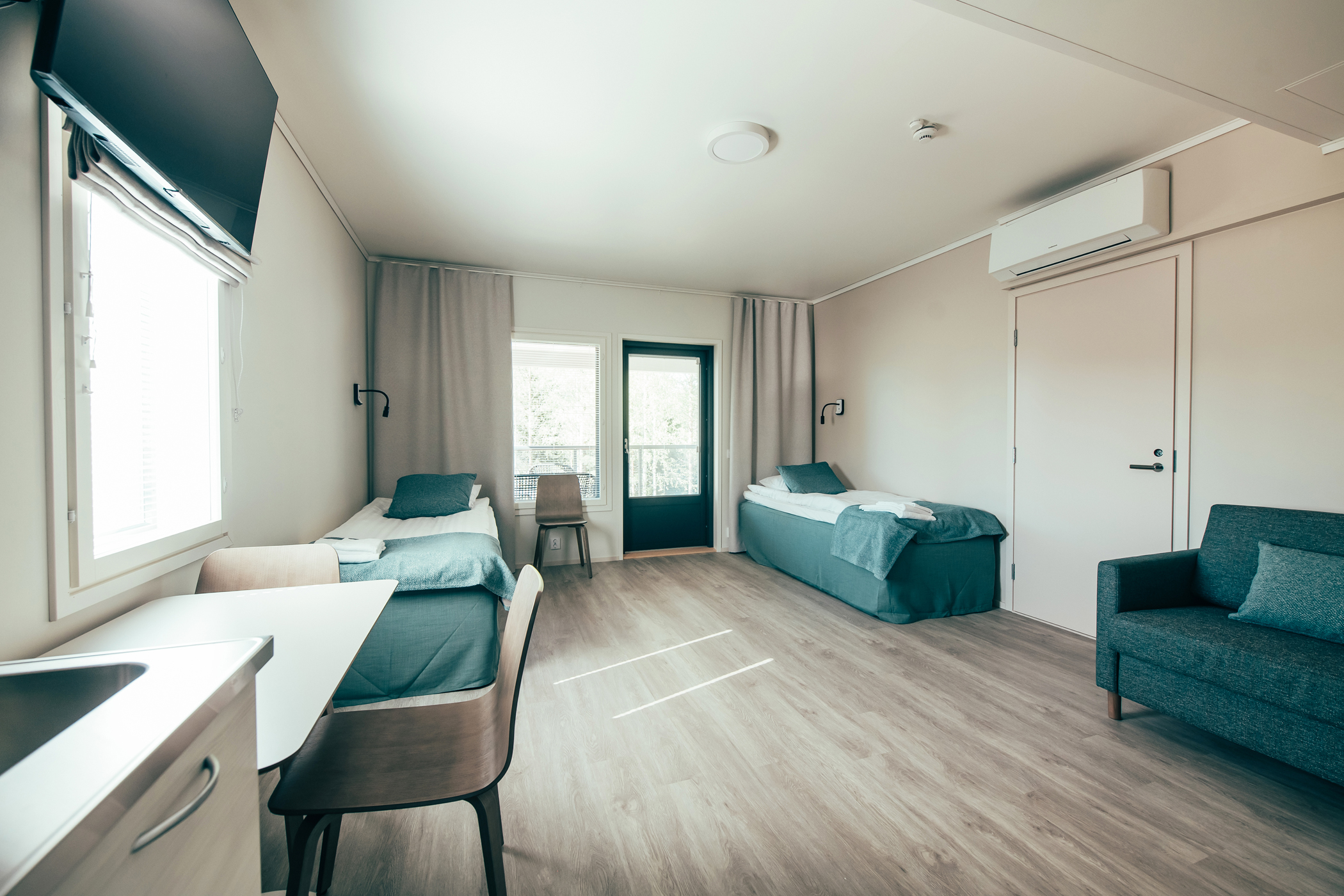 - majoituksen hotelli- tai opistotasossa, myös esteetöntä majoitusta ja lemmikkihuoneita