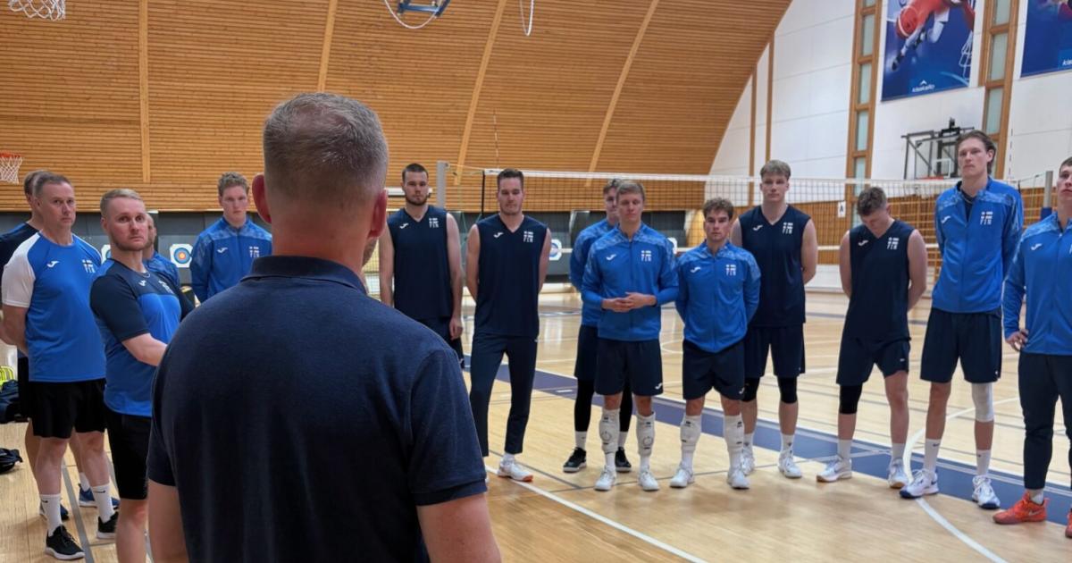Kuva: Ministeri Mika Poutala kävi tutustumassa miesten maajoukkueen toimintaan Kisakalliossa juuri ennen MM-kisoja 2025. Kuva: Suomen Lentopalloliitto